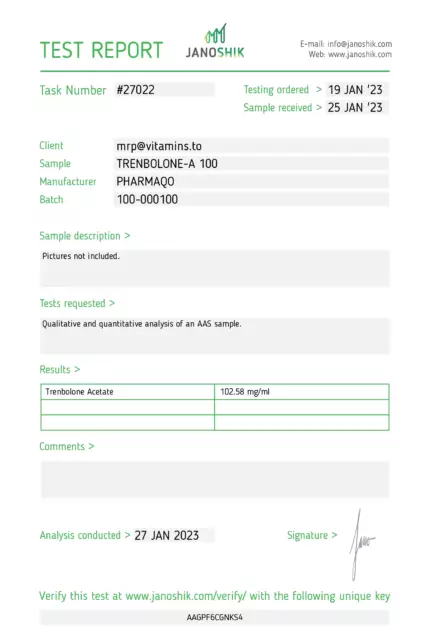 “Secure your Trenbolone A-100 from Pharmaqo Labs via our trusted online platform, ensuring the authenticity and efficacy of your product. Trenbolone Acetate is a highly potent anabolic steroid known for its versatile applications in both bulking and cutting phases. Suitable for advanced athletes looking to enhance muscle mass, reduce body fat, and escalate overall performance. Available now with swift and secure delivery.rnAbout Trenbolone A-100rnTrenbolone A-100, an injectable steroid with a strong reputation, is recognised for its significant impact on muscle strength and physique sculpting. Ideal for rigorous training cycles, it offers:rnrn tVersatility in Use: Effective during both bulking and cutting phases.rn tCycle Recommendations: Typically administered in an eight-week cycle to maximise efficacy and safety.rnrnStacking for Enhanced Resultsrnrn tBulking: Combine with Testosterone or Dianabol for increased muscle mass.rn tCutting: Pair with Winstrol to enhance fat loss while preserving lean muscle mass.rnrnBenefits of Pharmaqo Labs Trenbolone A-100rnChoosing Trenbolone A-100 from Pharmaqo Labs guarantees a premium product that provides substantial benefits:rnrn tMuscle Mass Enhancement: Significantly increases muscle size and density.rn tFat Reduction: Accelerates the burning of body fat, aiding in rapid physique refinement.rn tPerformance Boost: Elevates strength and endurance, allowing for more intense and productive workouts.rnrnTrenbolone A-100 Side EffectsrnDespite its benefits, Trenbolone Acetate may cause side effects, which include but are not limited to:rnrn tAcnern tHair lossrn tIncreased aggressionrn tInsomniarn tCardiovascular strainrn tPotential liver and kidney concernsrnrnTo minimise potential side effects:rnrn tAdhere strictly to dosage and cycle recommendations.rn tEnsure regular health checks to monitor effects throughout usage.rnrnDisclaimerrnTrenbolone A-100 should be used with careful attention to dosing and cycle duration to avoid adverse effects. Always consult with a healthcare professional before beginning any new steroid regimen, particularly for managing potential risks associated with its use.”