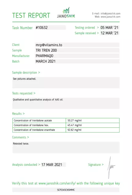 “Elevate your training and physique with Tri-Tren 200 from Pharmaqo Labs, a robust and innovative blend of three trenbolone esters designed specifically for bodybuilders and fitness devotees. This unique combination offers a continuous release of trenbolone, ensuring peak performance and maximum muscle gains.rnAbout Multi-Ester Tren (Tri-Tren) 200rnTri-Tren 200 combines three different trenbolone esters, each contributing uniquely to the blend:rnrn tTrenbolone Acetate (50 mg/ml): Provides rapid effects with a short half-life of 2-3 days, quickly enhancing strength and muscle mass.rn tTrenbolone Enanthate (100 mg/ml): Features a medium half-life of 7-10 days, ensuring stable and prolonged anabolic activity for sustained muscle growth.rn tTrenbolone Hexahydrobenzylcarbonate (50 mg/ml): With the longest half-life of 10-14 days, it offers extended trenbolone release, promoting consistent muscle gains and performance enhancement.rnrnKey Benefitsrnrn tEnhanced Muscle Growth: Promotes significant increases in muscle size.rn tIncreased Strength: Boosts strength for more intense workouts.rn tImproved Recovery: Reduces recovery times and muscle soreness.rn tBoosted Athletic Performance: Enhances overall athletic capabilities.rn tOptimised Fat Loss: Aids in reducing body fat more efficiently.rnrnPotential Side EffectsrnUsing Tri-Tren 200 can lead to side effects such as:rnrn tAcne, hair loss, and oily skinrn tIncreased aggression and potential mood swingsrn tGynecomastia, in some casesrnrnMore severe risks include kidney or liver damage and cardiovascular issues.rnDisclaimerrnTo minimise side effects, adhere to proper dosing schedules, maintain a balanced diet, and stay hydrated.u00a0rnrnTri-Tren 200 is a potent steroid blend that should be used responsibly. Always consult a healthcare professional before beginning any new steroid regimen to ensure it is safe and appropriate for your health and fitness goals.rnrnDiscover the transformative effects of Multi-Ester Tren (Tri-Tren) 200 from Pharmaqo Labs, and achieve your peak physical potential today.”